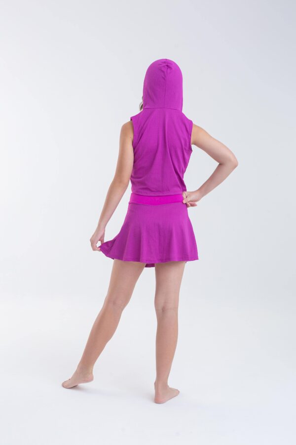 Colete com zíper destacável e capuz confeccionado em tecido de dry fit de poliamida. Tecido leve, confortável e de rápida secagem.
