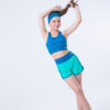 Conjunto de short duplo azul escuro com short externo em Dry fit verde água. Confeccionados em tecidos de poliamida com elastano proporcionando leveza e conforto na prática de qualquer atividade física.