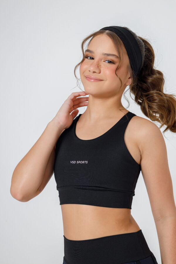 Conjunto de short duplo e top confeccionado em tecido de poliamida. O short  é composto por 1 short externo em tecido de deifit de poliamida e de um shortinho interno de poliamida  então a criança ou a adolescente não precisa se preocupar quando for realizar movimentos de grandes amplitudes, pois o tecido tem bastante elasticidade e consegue acompanhar o movimento. Composição de 85% poliamida e 15% elastano. O tecido promove conforto e elasticidade durante da prática da atividade física.