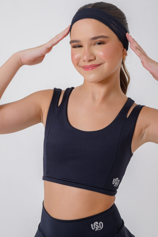 Conjunto de short saia e top com confeccionado em tecido de poliamida. O short saia é composto por 3 babados e tem o shortinho embaixo então a criança ou a adolescente não precisa se preocupar quando for realizar movimentos de grandes amplitudes, pois o tecido tem bastante elasticidade e consegue acompanhar o movimento. Composição de 85% poliamida e 15% elastano. O tecido promove conforto e elasticidade durante da prática da atividade física.