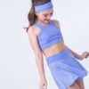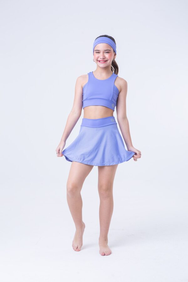 Conjunto de short saia e top lilás confeccionado em poliamida com a composição de 85% poliamida e 15% elastano. A saia é confeccionada no tecido de dry fit de poliamida Tecido macio, confortável, ideal para a prática de atividade física e também para compor o seu look do dia a dia. Tecido de alta durabilidade.