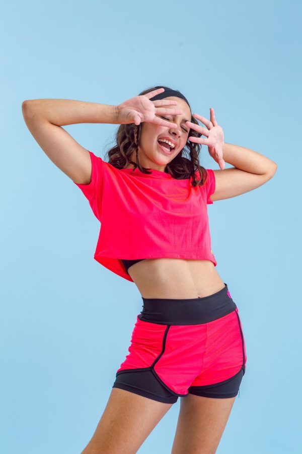 Cropped em dry fit de poliamida. Tecido confortável, leve e de rápida secagem.