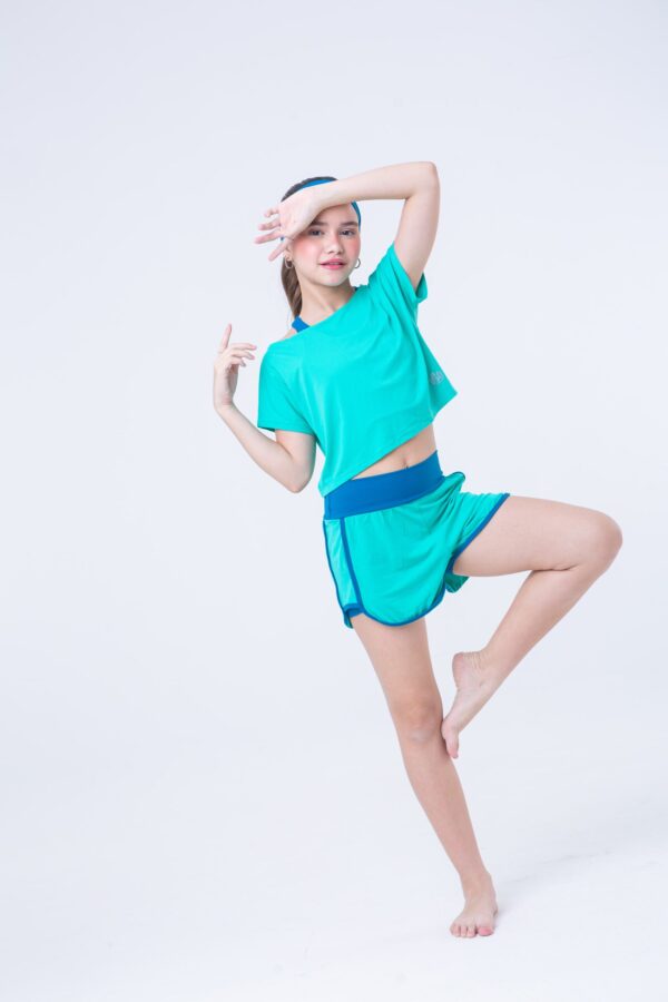 Cropped verde água confeccionada em dry fit de poliamida. Tecido leve e confortável e de rápida secagem. Proporciona leveza e conforto durante a prática da atividade física. Possui fator de proteção solar 50.